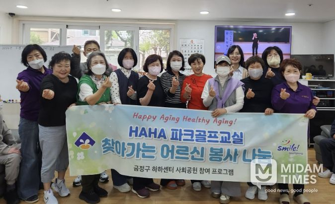 미담타임스 남혜영 기자 | 부산 금정구 하하센터(금사동 소재)는 지난 14일 신노년 건강강좌 파크골프교실 수강생들이 관내 어르신 주간보호센터를 방문해 찾아가는 재능기부 봉사활동을 실시했다고 밝혔다.
