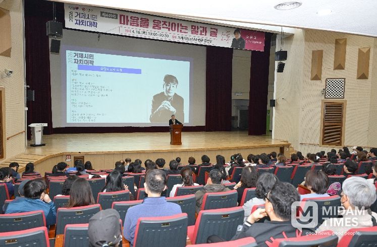 미담타임스 황명수 기자 | 거제시가 지난 4월 16일 강원국 작가님을 초청해 ‘2026년 거제시민자치대학’을 성황리에 개최했다고 밝혔다.