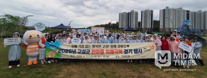 미담타임스 황명수 기자 | 고성군 치매안심센터는 4월 17일 오전 9시 30분부터 12시까지 수남유수지생태공원(백세공원)에서 지역주민 200여 명이 참여한 가운데 ‘2026년 고성군 한마음 치매극복 걷기 행사’를 개최했다