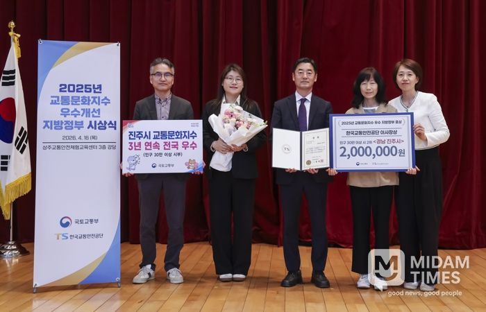 미담타임스 황명수 기자 | 진주시는 지난 16일 국토교통부가 주최한 ‘2025년 교통문화지수 우수 지자체 시상식’에서 인구 30만 명 이상의 시부 그룹에서 전국 2위를 차지해 3년 연속 우수 지자체로 선정돼 기관 표창을 받았다고 밝혔다.
