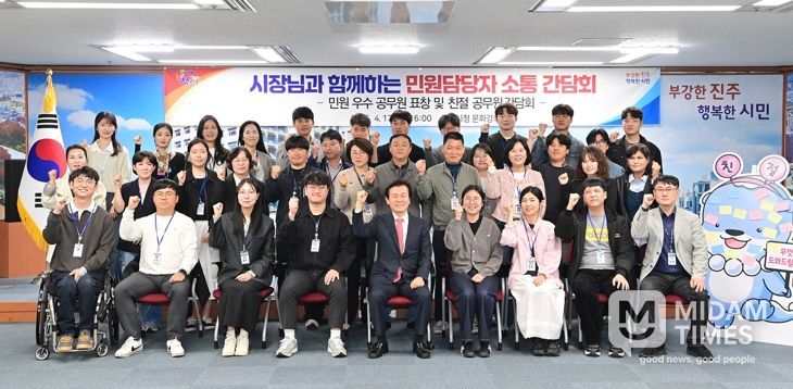 미담타임스 황명수 기자 | 진주시는 지난 17일 시청 3층 문화강좌실에서 1분기 민원 처리 우수공무원과 친절 공무원 40여 명을 대상으로 ‘표창 수여식 및 소통 간담회’를 가졌다.
