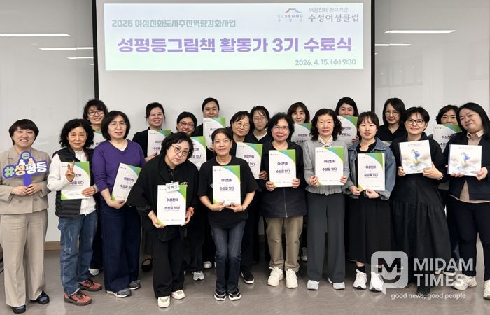 라혜영 수성여성클럽 관장은 “주민이 주도하는 성평등 교육과 생활 속 성인지 감수성 확산에 활동가들의 역할이 중요하다”며 “앞으로도 지속적인 역량 강화와 현장 활동을 적극 지원하겠다”고 밝혔다.