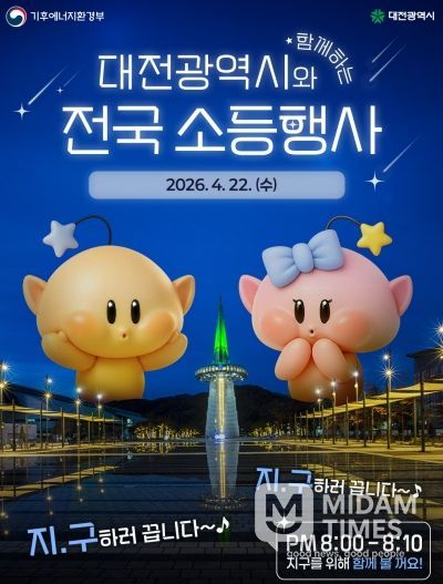 미담타임스 김준완 기자 | 대전시는 제56주년 지구의 날을 맞아 20일부터 25일까지 ‘탄소중립 실천으로 세상을 잇다, 지구는 녹색대전환 중’을 슬로건으로 기후변화주간을 운영하고, 22일 저녁에는 소등행사를 실시한다.