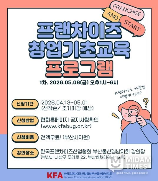 미담타임스 남혜영 기자 | 부산시는 지역 프랜차이즈 산업의 성장을 지원하기 위해 프랜차이즈 가맹점 창업을 희망하는 예비 창업자를 대상으로 '프랜차이즈 창업 기초 교육' 프로그램을 운영한다고 밝혔다.