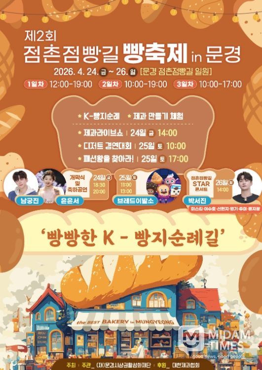 올해로 두 번째를 맞는 ‘점촌점빵길 빵 축제’는 오는 24일부터 26일까지 3일간 문경 옛 시가지인 점촌점빵길 일대에서 열린다.