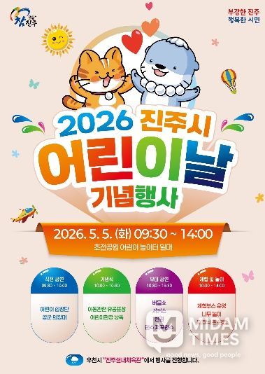 미담타임스 황명수 기자 | 진주시는 제104회 어린이날을 맞아 5월 5일 초전공원 어린이 놀이터 일원에서‘2026년 어린이날 기념행사’를 개최한다.