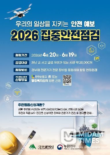 미담타임스 전해찬 기자 | 대구 중구는 지난 20일부터 6월 19일까지 공공 및 민간 시설을 대상으로 ‘2026년 집중안전점검’을 실시한다.
