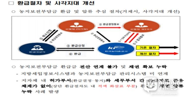 감사원은 보고서를 통해 거제시와 서 팀장이 앞서 지적한 것과 같이, 최근 5년 간(2020~2024년) 약 7,543억 원(연평균 약 1,509억 원)의 농지보전부담금 환급 정보 공유 미비로 인한 국세와 지방세 체납자에 대한 세원 누수를 공식 확인하고 관계 부처에 대책 마련을 통보했다.