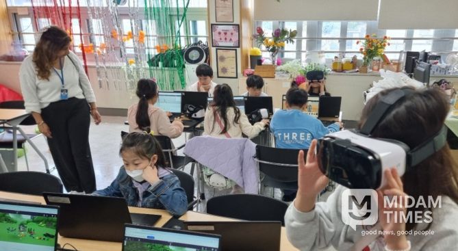 ▲'AR+VR' 수업은 5~6학년을 대상으로 ‘AR+VR기기와 소프트웨어를 활용하여 가족과 함께하고 싶은 휴가 계획하기’, ‘가족과 관련된 기념일 알아보기’ 등의 활동이 진행된다.