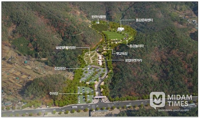 기장군 철마면 구칠리 내 24만 1천 제곱미터(㎡)에 시비 433억 원을 투입해 국내 최대 규모로 조성되며, ▲동감문화센터 ▲동감둘레길 ▲글로벌테마정원 ▲동감놀이터 ▲펫교육장 ▲반려식물원 ▲로컬마켓거리 등 반려문화 관련 다양한 시설 들어설 예정이다.