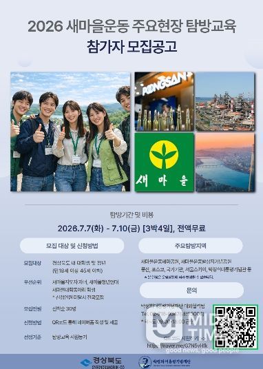미담타임스 김준완 기자 | 경상북도와 박정희대통령기념재단은 청년세대의 새마을운동에 대한 이해도를 높이고 가치 확산을 위해 ‘2026 새마을운동 주요현장 탐방교육’을 운영하고 참가자를 모집한다.