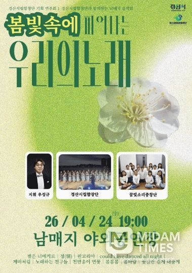 경산시립합창단 관계자는 “자연과 음악이 어우러진 이번 무대를 통해 시민들이 일상의 스트레스를 해소하고 희망찬 봄의 기운을 만끽하시길 바란다”며, “앞으로도 시민들과 가까이에서 호흡하며 품격 있는 문화 향유 기회를 확대해 나갈 것” 이라고 전했다.