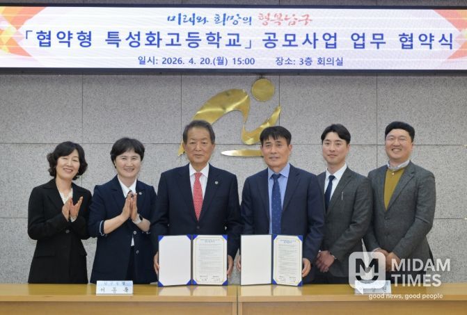 미담타임스 김준완 기자 | 울산 남구는 20일 구청장실에서 울산공업고등학교와 교육부 주관 ‘2026년 협약형 특성화고등학교 공모사업’ 신청을 위한 업무협약을 체결했다.