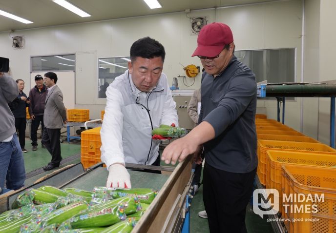 미담타임스 정인화 기자 | 이범석 청주시장은 20일 흥덕구 오송읍에 위치한 청원생명 애호박 공동선별장을 방문해 공선 및 유통 현황을 점검하고 관계자와 지역 농민들을 격려했다.