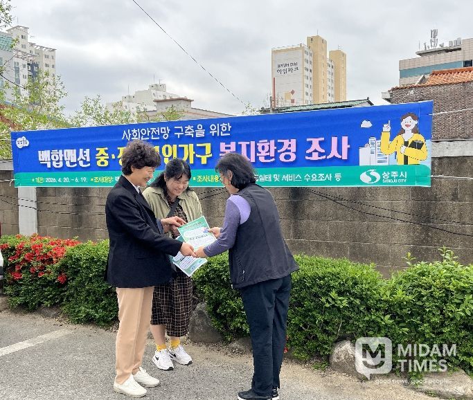 미담타임스 김준완 기자 | 상주시는 4월 20일부터 6월 19일까지 상주시 백합맨션 거주 중·장년(40~64세) 1인 가구를 대상으로 고독사 예방 및 사회적 고립가구 조기발견을 위한 복지환경 조사를 실시한다.