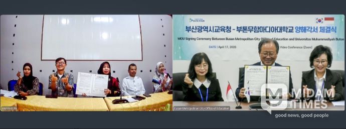 미담타임스 남혜영 기자 | 부산광역시교육청은 지난 17일 인도네시아 부톤무함마디아대학교(총장 와 오데 알 자릴리아니, Wa Ode Al Zarliani)와 ‘한국어 교육 활성화 및 문화교류 증진을 위한 양해각서’를 온라인 화상회를 통해 체결했다고 밝혔다.