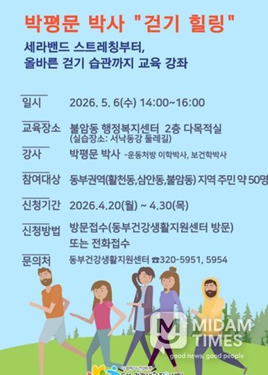 미담타임스 황명수 기자 | 김해시 동부건강생활지원센터는 오는 5월 6일 시민들의 생활 속 운동 실천율을 높이고 올바른 걷기 지식을 보급하기 위해 ‘세라밴드 스트레칭부터 올바른 걷기 습관까지’ 교육 강좌를 개최한다고 21일 밝혔다.