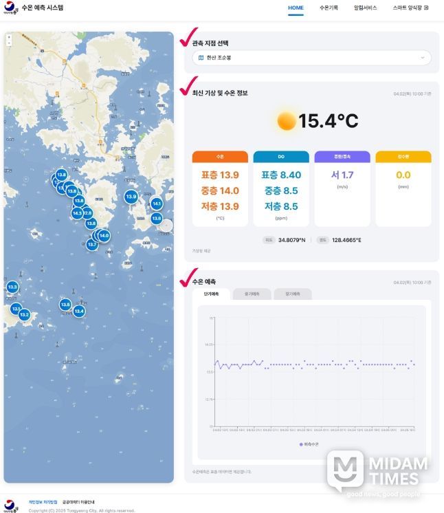 미담타임스 황명수 기자 | 통영시는 해양 기후변화에 따른 연안 재해 대응 강화를 위해 개발한 고수온 예측 서비스의 신청 접수를 지난 20일부터 시작했으며, 오는 5월부터 본격 운영에 들어간다.