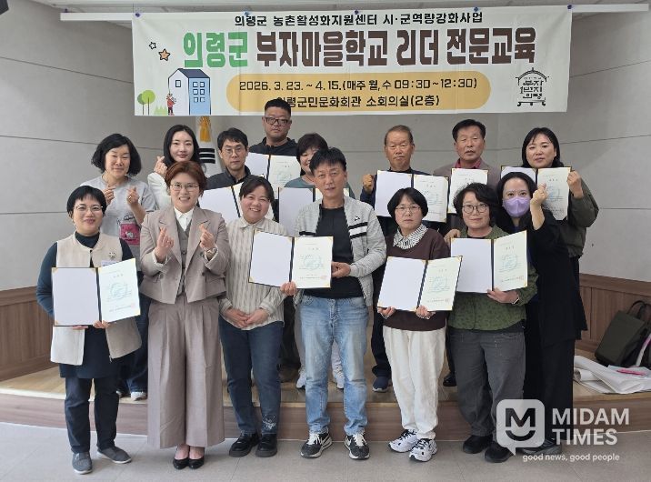 미담타임스 황명수 기자 | 의령군은 지난 3월부터 추진해 온 ‘2026년 부자마을학교 리더 전문교육’을 마무리하고 12명의 수료생을 배출했다고 밝혔다.
