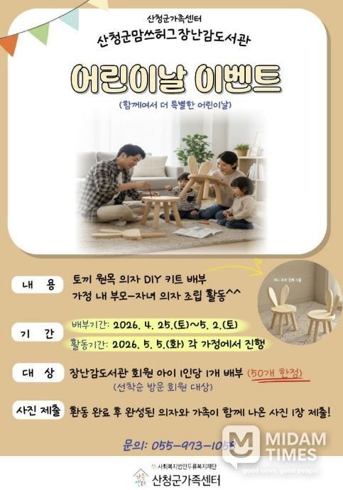 미담타임스 황명수 기자 | 산청군가족센터는 어린이날을 맞아 ‘함께여서 더 특별한 어린이날’사업을 추진한다고 21일 밝혔다.