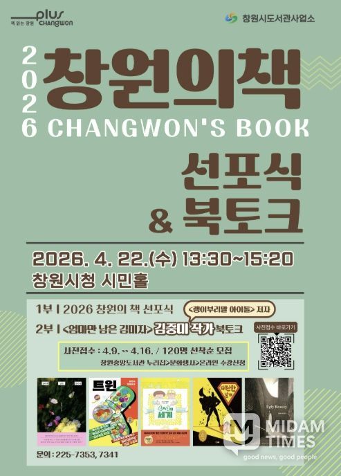 미담타임스 황명수 기자 | 창원특례시 도서관사업소는 오는 4월 22일 오후 1시 30분, 창원시청 시민홀에서 시민들과 함께하는 ‘2026 창원의 책’ 선포식을 개최한다고 밝혔다.