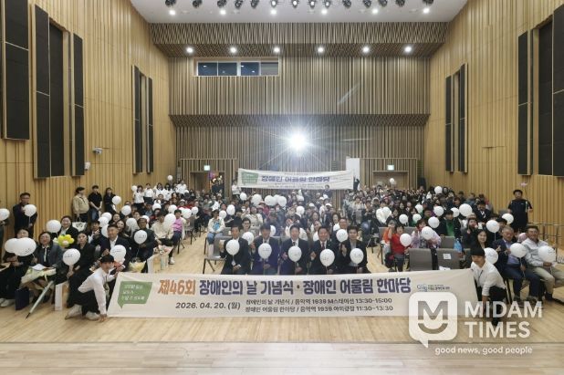 미담타임스 정주환 기자 | 가평군은 20일 가평군장애인복지관 주관으로 ‘제46회 장애인의 날 기념식 및 화합 행사’를 개최했다. 음악역1939에서 열린 이번 행사에는 장애인과 시설·단체 관계자, 지역 주민 등 400여 명이 참석해 의미 있는 소통의 시간을 가졌다.
