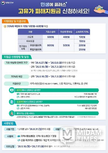 미담타임스 정인화 기자 | 광양시는 중동 사태로 인한 고유가·고환율·고물가 상황에 대응해 시민의 부담을 줄이기 위해 4월 27일부터 ‘고유가 피해지원금’을 지급한다고 밝혔다.