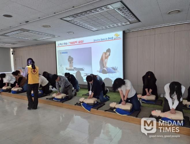대한적십자사 응급처치 강사 장정권 강사가 참여해 실제 현장에서 발생할 수 있는 상황을 중심으로 교육했다.
