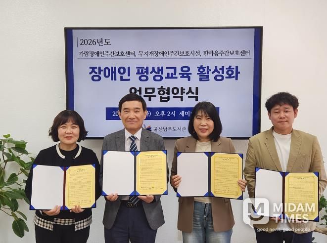 미담타임스 박민정 기자 | 울산 남부도서관은 21일 도서관 세미나실에서 가람장애인주간보호센터, 무지개장애인주간보호시설, 한마음주간보호센터와 장애인 평생학습 활성화 업무협약을 체결했다.