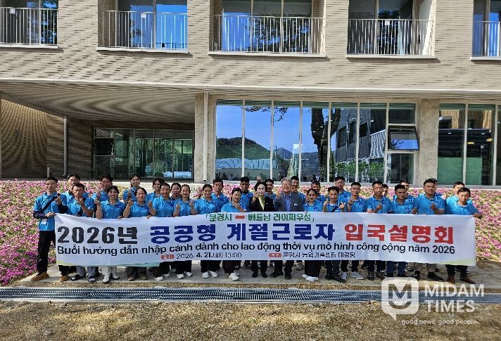 미담타임스 김준완 기자 | 문경시는 4월 21일 농업기술센터 대강당에서 2026년 공공형 계절근로자 1차 입국자 30명을 대상으로 입국설명회를 개최하고 본격적인 농가 인력 지원에 나섰다.