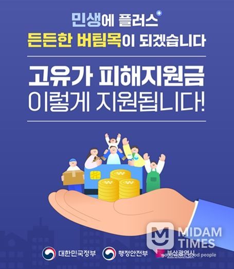 미담타임스 남혜영 기자 | 부산시는 고유가․고물가로 인한 시민 부담을 완화하고 지역 경제 회복을 지원하기 위해 4월 27일부터 5월 8일까지 '고유가 피해지원금' 1차 지급을 개시한다고 밝혔다.