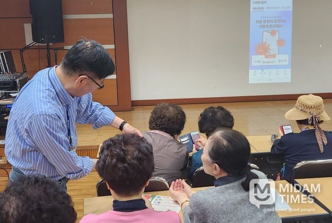 ‘스마트폰 보안관’은 성남 지역 노인기관 75개소를 찾아가 스마트폰 보안점검을 실시해 악성앱을 차단하고 보이스피싱 예방을 위한 인식 개선 활동을 하는 경기도 시범 사업이다.