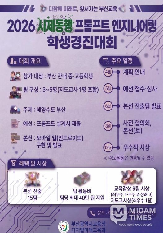 미담타임스 남혜영 기자 | 부산광역시교육청은 관내 중·고등학생과 교사가 한 팀으로 참여하는 ‘사제동행 2026 프롬프트 엔지니어링 학생경진대회’를 개최한다고 밝혔다.
