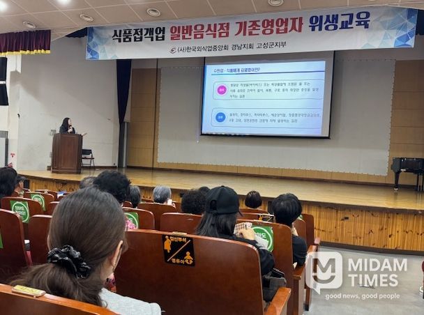 미담타임스 황명수 기자 | 고성군은 4월 20일 관내 식품접객업소(일반음식점) 영업자 200여 명을 대상으로 ‘감염병 예방 교육’을 실시했다고 밝혔다.
