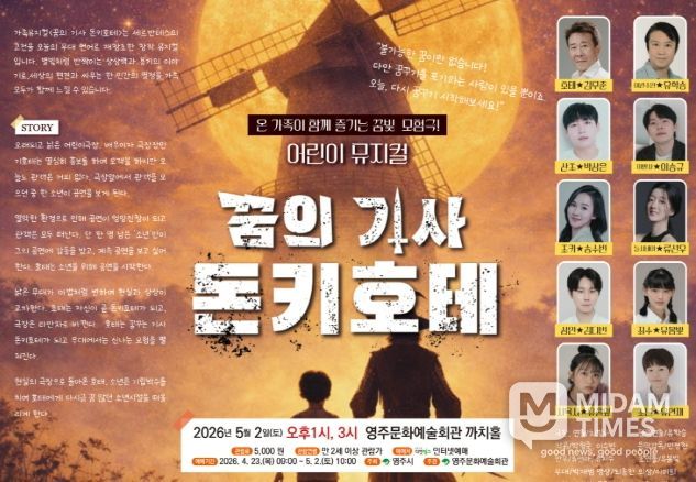 미담타임스 김준완 기자 | 영주시는 오는 5월 2일 오후 1시와 오후 3시, 두 차례에 걸쳐 영주문화예술회관 까치홀에서 어린이 뮤지컬 ‘돈키호테’를 선보인다.