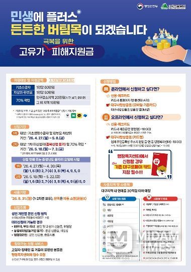 김정기 대구광역시장 권한대행 행정부시장은 “중동전쟁으로 인한 고유가·고물가로 지역경제 소비심리가 크게 위축됐다”며 “민생 안정이 최우선인 만큼, 시민분들께서 신청 단계부터 지급·사용까지 불편함이 없도록 만반의 준비를 다하겠다”고 말했다.