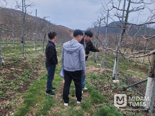 이에 따라 진안군은 ‘현장 일제 출장의 날’을 운영하며 농가 대상 기술지도를 한층 강화하고 있다. 저온 피해 예방을 위해 찬 공기가 유입되는 과원 하부에 임시 울타리를 설치해 냉기 유입을 차단하고, 저온이 예상될 경우 사전에 토양 30cm 깊이까지 충분히 관수하도록 안내하고 있다.