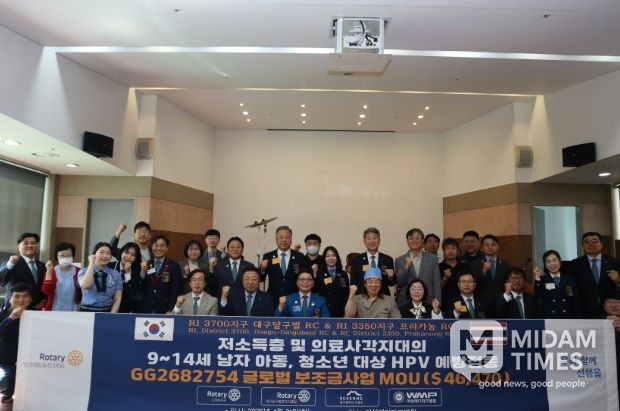미담타임스 전해찬 기자 | 대구 수성구는 국제로타리 3700지구(대구달구벌로타리클럽), 여성메디파크병원과 지난 21일 저소득층 및 의료사각지대에 있는 남자 아동·청소년을 대상으로 ‘HPV(사람유두종바이러스) 예방접종 지원을 위한 업무협약’을 체결했다.
