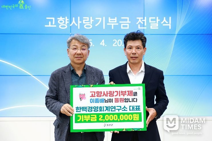 미담타임스 김준완 기자 | 한백경영회계연구소 이종배 대표가 지난 4월 20일 울진군에 고향사랑기부금 200만 원을 전달했다.