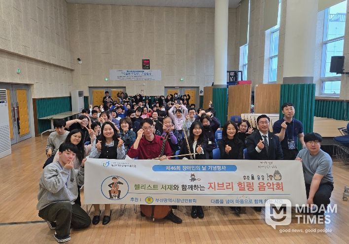 장애인의 날을 기념해 14일 해운대구 장애인복지관에서 ‘지브리 힐링 음악회’를 열었다. ‘다름을 넘어 마음으로 함께하는 시간’을 주제로 첼리스트 서재, 조수임 재즈트리오가 음악으로 위로와 공감을 전했다. 이웃집 토토로, 하울의 움직이는 성 등 친숙한 지브리 영화 음악을 연주해 장애인과 아동들에게 감동을 선사했다.