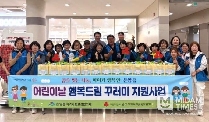 미담타임스 김준완 기자 | 울주군 온양읍 지역사회보장협의체가 22일 온양읍 행정복지센터에서 지역 저소득가구의 미취학·초등학생을 대상으로 어린이날 행복드림 꾸러미 전달식을 가졌다.