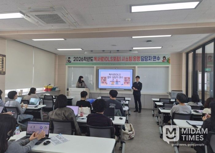 미담타임스 김준완 기자 | 경상북도울진교육지원청은 4월 22일 울진중학교 도서관에서 관내 초·중·고 학교도서관 및 독서 교육 담당자를 대상으로 '2026학년도 독서로(DLS포함) 담당자 지역 연수'를 개최했다.