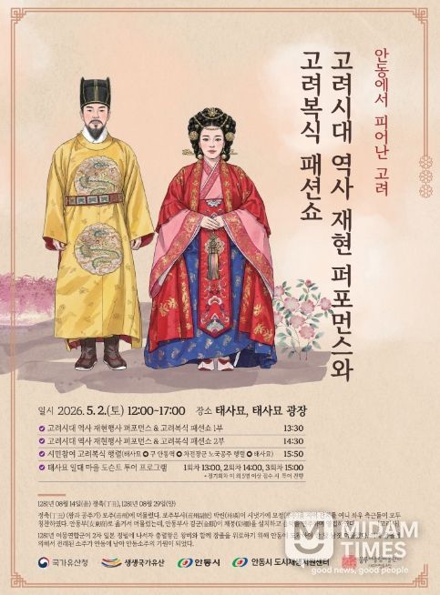 미담타임스 김준완 기자 | 안동시 도시재생지원센터는 오는 5월 2일 12시부터 태사묘와 태사광장 일대에서 ‘2026년 생생 국가유산 사업’의 일환으로 진행되는 '안동에서 피어난 고려' 행사를 개최한다고 밝혔다.