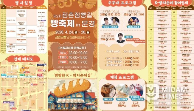 미담타임스 김준완 기자 | 문경시는 『제2회 점촌점빵길 빵 축제』가 오는 4월 24일부터 26일까지 3일간 점촌점빵길 일대에서 화려한 막을 올린다고 했다.