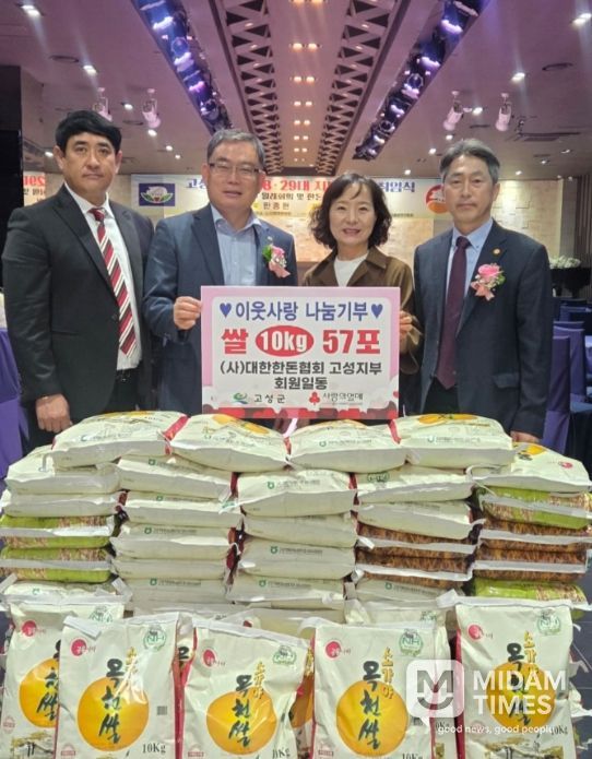 미담타임스 황명수 기자 | (사)대한한돈협회 고성지부(지부장 한창주)는 22일, 관내 어려운 이웃을 위해 쌀 10kg, 57포(약 160만원 상당)를 고성군에 기탁했다.