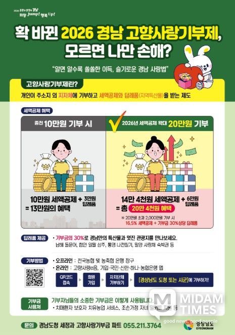 또한 올해부터 ‘10만 원 초과 20만 원 이하 기부금’에 대해 44% 세액공제가 적용됨에 따라, 현장에서 세제 혜택과 답례품 제도를 집중 안내해 기부 참여를 적극 유도할 방침이다.