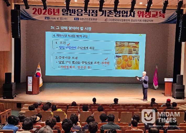 미담타임스 황명수 기자 | 의령군은 22일 의령군민문화회관에서 일반음식점 기존 영업자 300여 명을 대상으로 위생교육을 실시했다고 밝혔다.