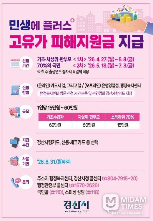 미담타임스 김준완 기자 | 경산시는 27일부터 시작되는 '고유가 피해지원금' 1차 지급을 앞두고, 전담 T/F(Task Force) 구성과 읍·면·동 담당자 교육 등 신속한 지원금 지급 준비에 박차를 가하고 있다.