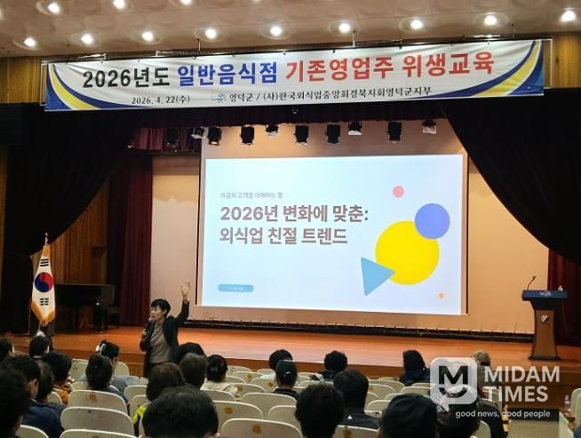 미담타임스 김준완 기자 | 영덕군은 관내 외식 산업 영업자들의 위생 관리 역량을 높이고 고품격 외식 환경을 조성하기 위해 22일 영덕군민회관에서 일반음식점 기존영업자 300여 명을 대상으로 ‘2026년 일반음식점 위생교육’을 시행했다.