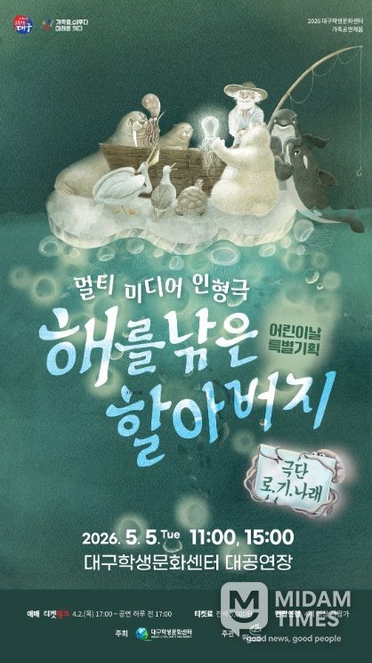 미담타임스 전해찬 기자 | 대구학생문화센터는 어린이날을 맞아 어린이와 가족 관객을 위한 특별 기획공연 '멀티미디어 인형극 해를 낚은 할아버지'를 오는 5월 5일 대공연장에서 선보인다.